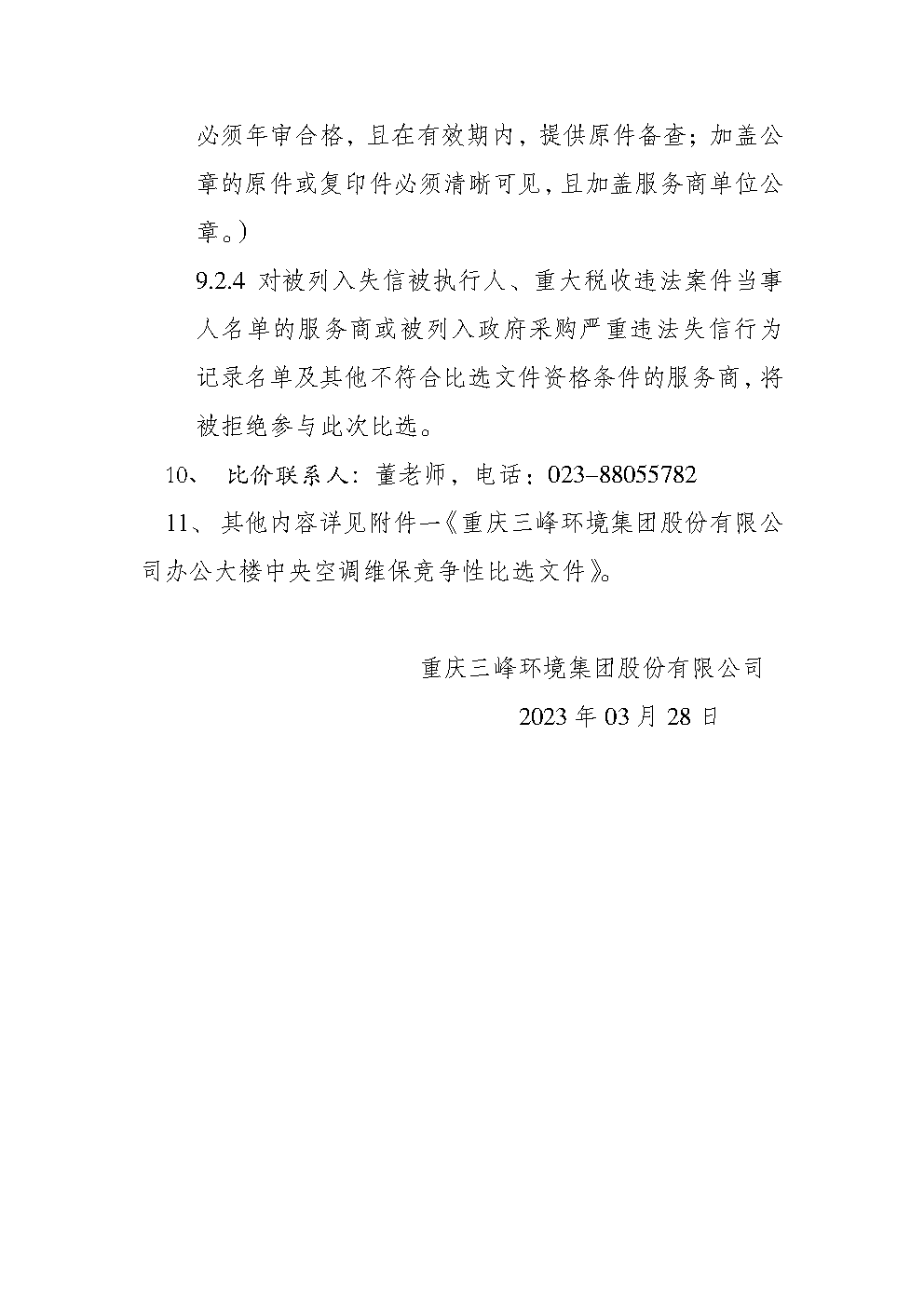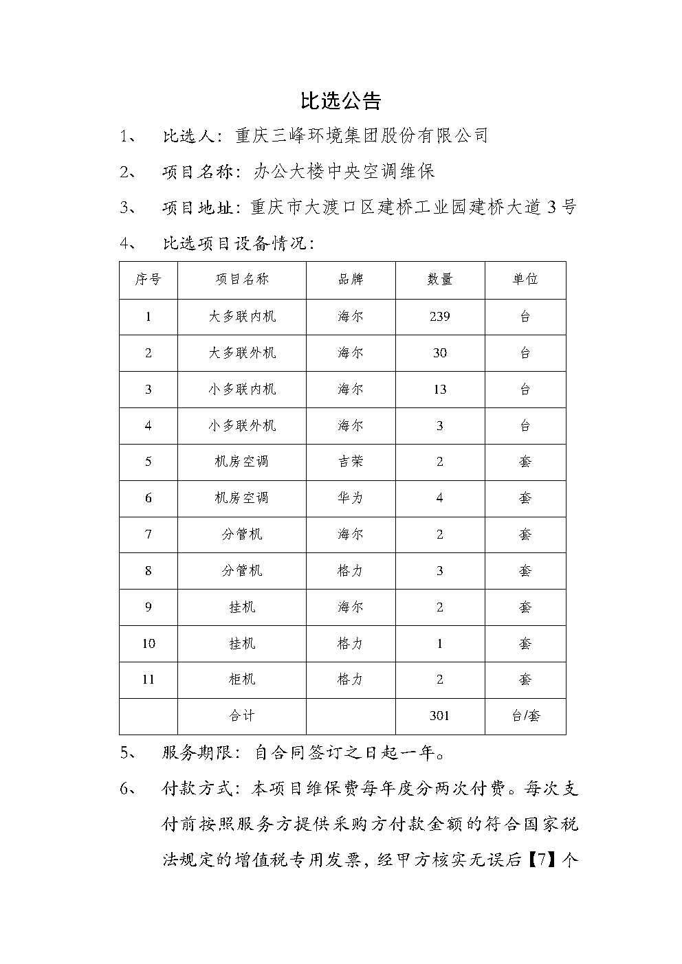 附件一《重慶三峰環境集團股份有限公司辦公大樓中央空調維?!?doc